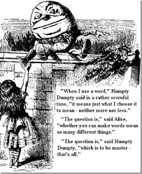 Cameron is right that the value of the word is a matter of context, but he is wrong to think it's solely about intention. Language is a social construct, which means that words mean what we agree they mean, not what any one individual decides. The joke in Alice Through the Looking Glass was not Humpty Dumpty's positivist worldview but his egomania.