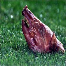 Though a pig's head can be a tasty dish, and could therefore be considered a good thing, it still retains that unmistakable message of contempt even when cooked, hence the cochinillo, or suckling pig, that was famously thrown at Luis Figo when he returned to the Camp Nou as a Real Madrid player in 2002. The association of the pig's head and sport, or male-bonding more generally, is not accidental. It is a fairly common prop of rugby club night-outs and stag-dos, and occasionally to be found hidden as a surprise present in changing room lockers. Perhaps this carries an echo of the ancient hunt, from which most sports derive. Or perhaps the pig's head is just a handy piece of ickiness in a world where we rarely see the reality of factory-farming and meat production. A packet of Walls' sausages does not have quite the same impact.